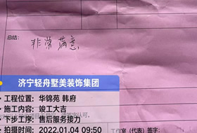 貴府的工程已全部圓滿竣工并通過了竣工驗(yàn)收,感謝您在整個(gè)過程中對于我們的理解、支持和包容。輕舟美住裝飾張興魯工作室提前恭賀您和家人喬遷新居,恭祝您和家人生活幸福美滿、事業(yè)蒸蒸日上。